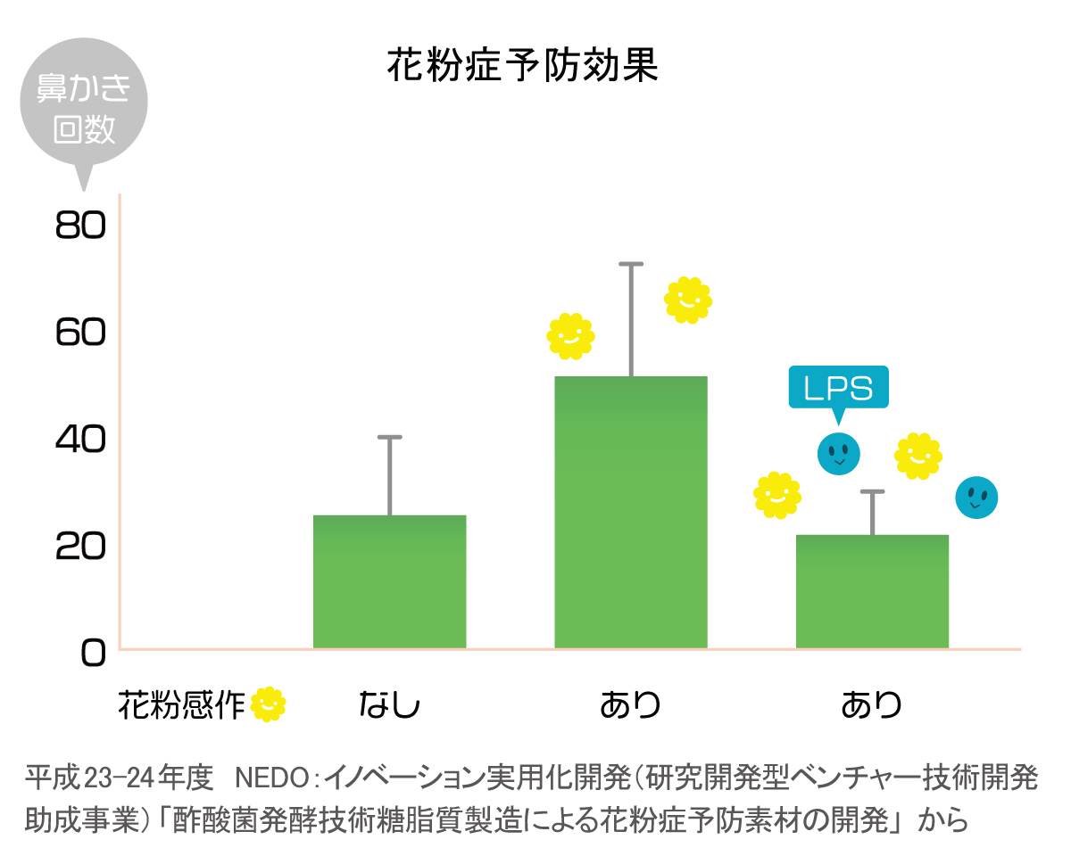 此外,小鼠实验表明,同时给予小鼠花粉和脂多糖(LPS)时,小鼠的花粉症症状比未给予花粉的小鼠要轻。换句话说,LPS与花粉症之间存在密切联系。